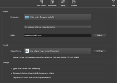 De interface van BatchPhoto is eenvoudig en overzichtelijk, en heeft een duidelijk overzicht dat je in drie tot vier stappen door het proces leidt. Dit maakt het programma laagdrempelig, ook voor mensen zonder uitgebreide kennis van fotobewerking. De app is gebouwd om grote hoeveelheden foto’s automatisch te verwerken zonder dat je constant hoeft bij te sturen, ideaal voor deadlines, evenementen of product- en vastgoed fotografie.