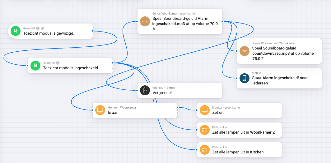 Voorbeeld 1 – Flow voor wat te doen als alarm word geactiveerd (als er dus alarm is):
