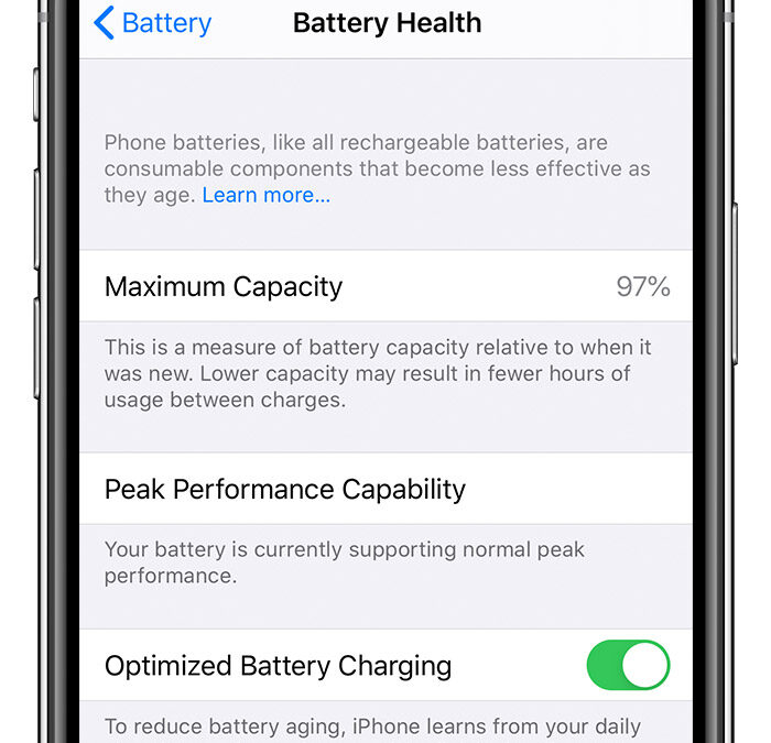 Apple is aan het proberen om de batterij die in de iPhone toestellen zit langer mee te laten gaan. Geoptimaliseerd opladen (Optimized Battery Charging) pakt de manier waarop de iPhone snachts oplaad aan, om ervoor te zorgen dat de batterij langer mee kan gaan. Sinds de update naar iOS 13 is ‘geoptimaliseerd opladen’ actief op de iPhone toestellen. Het kan voorkomen dat je ziet dat het opladen maar tot 80% is voltooid.