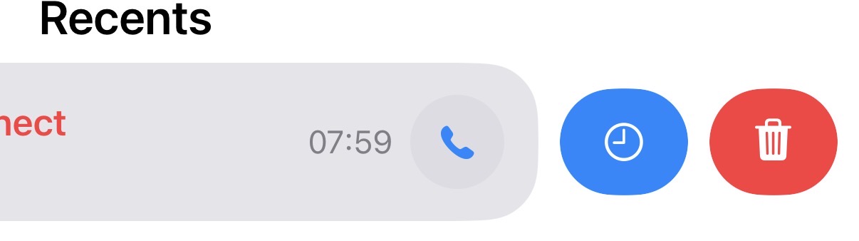 - Veeg het gesprek iets naar links tot je twee iconen ziet verschijnen: een prullenbak en een klokje.
