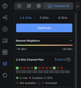 Channel AI analyseert continu de draadloze omgeving van elk access point in je netwerk. Het kijkt onder andere naar: